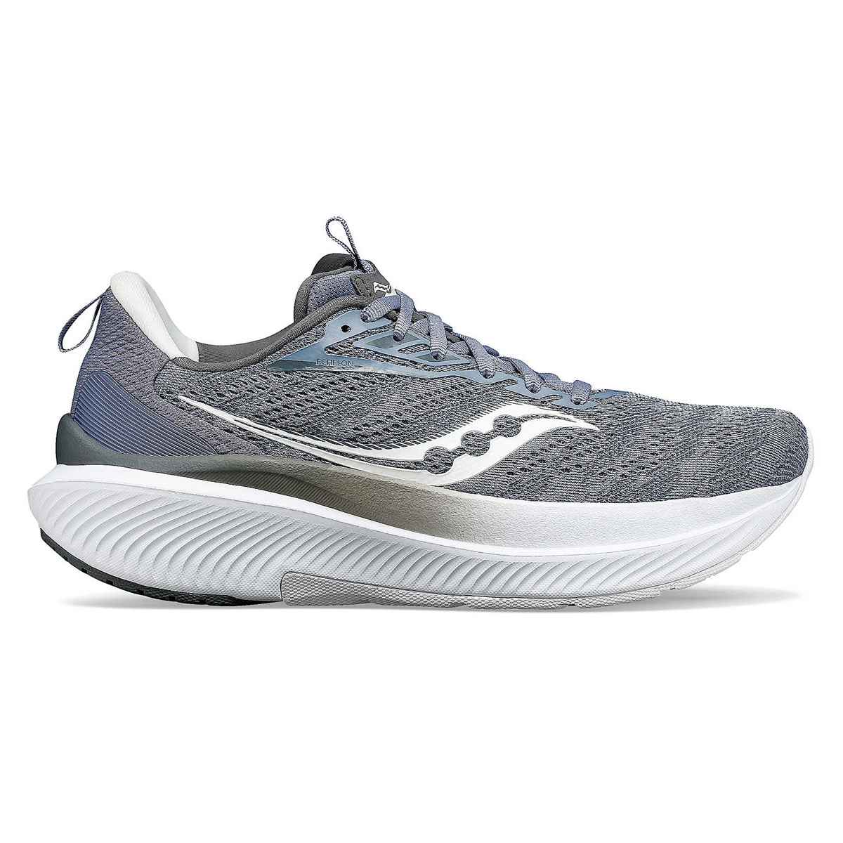 Een zeer stabiele PWRRUN zool op het vertrouwde Echelon-basisplatform met een moderne geometrie, verticale hiel groef voor een soepele afwikkeling en een vollledig nieuw bovenwerk uit één stuk van naadloos structured dubbellaags mesh materiaal.