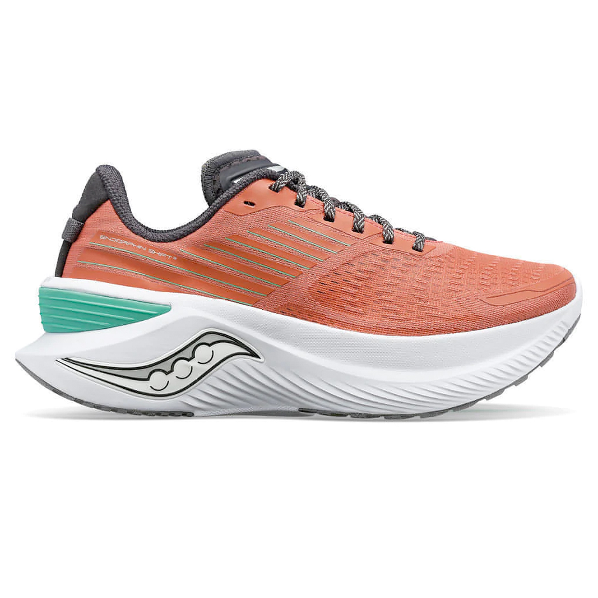 Saucony Endorphin SHIFT 3 Soot/Baslt Rouille dames is een door atleten ontworpen neutrale loopschoen van Saucony. Deze nieuwe Shift 3 is een stabiele schoen met superdemping in de structured cushioning categorie.