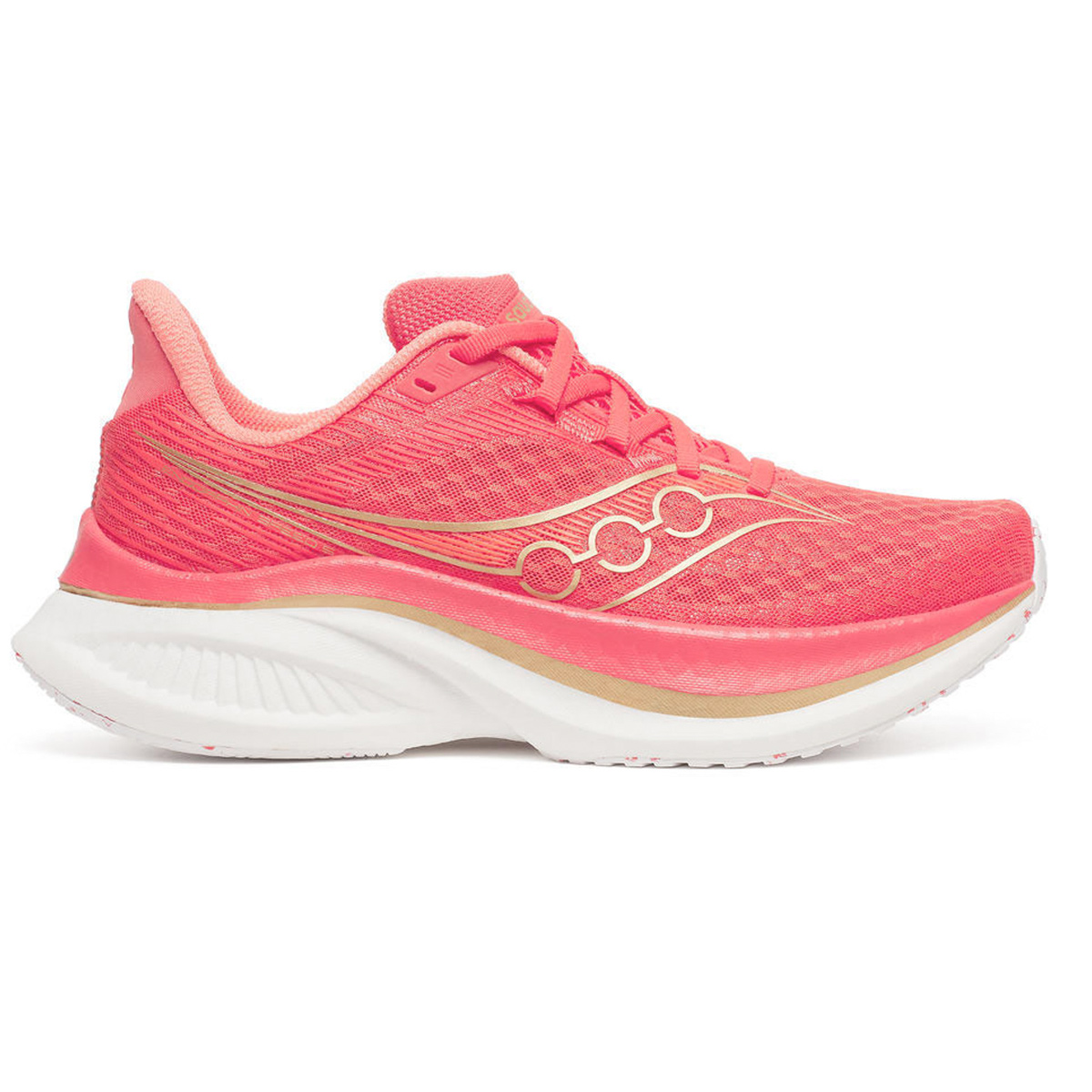 De Saucony Endorphin 5 (Coral/Salmon) dames een een vederlichte, snelle traininingsschoen met een kunststof nylon plaat over de gehele lengte. Deze schoen neemt je mee tijdens jouw tempotrainingen en dat PR op de marathon of verder. Een heerlijk reactief gevoel bij iedere stap!