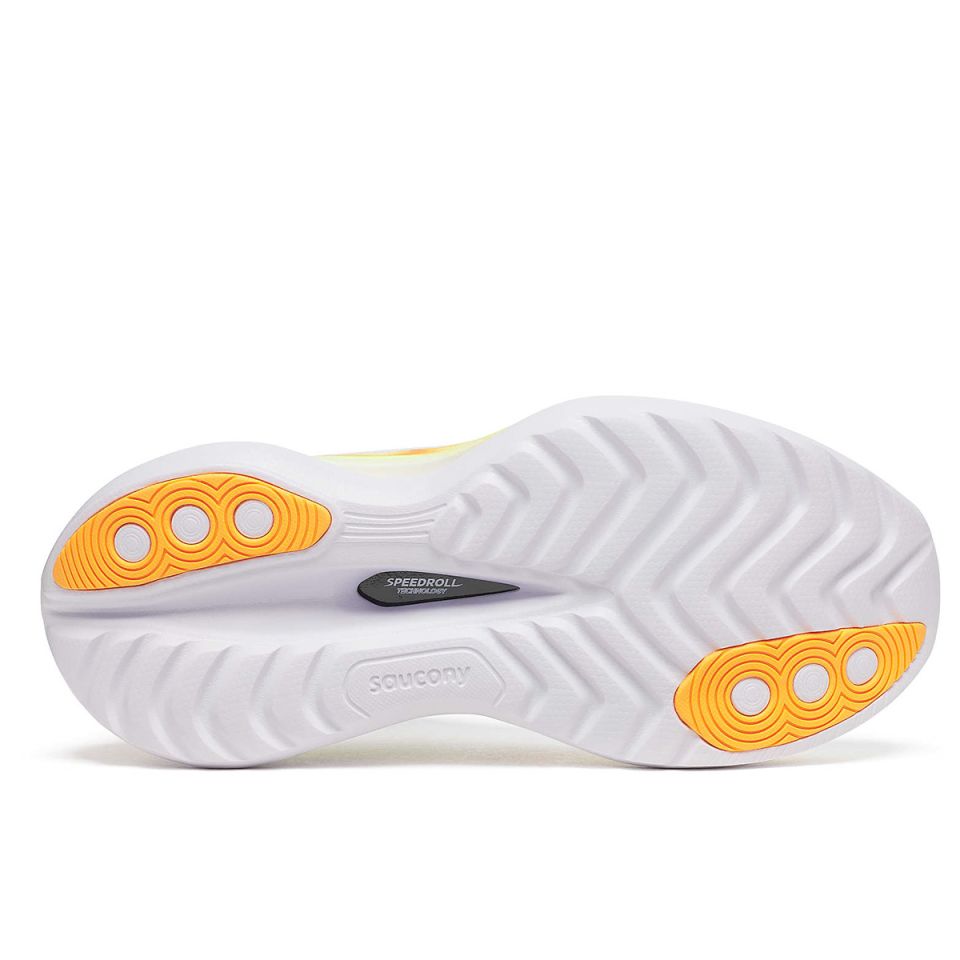 In deze schoen wordt ook gebruik gemaakt van de SpeedRoll-technologie. Dit is het gedeelte van de voorvoet wat afgerond is voor een soepele afwikkeling. Ook wel toe-off genoemd. Hoe groter de curve hoe soepeler de rol. In combinatie met een geometrische geplaatste slijtzool heb je de beste grip tijdens je afwikkeling.