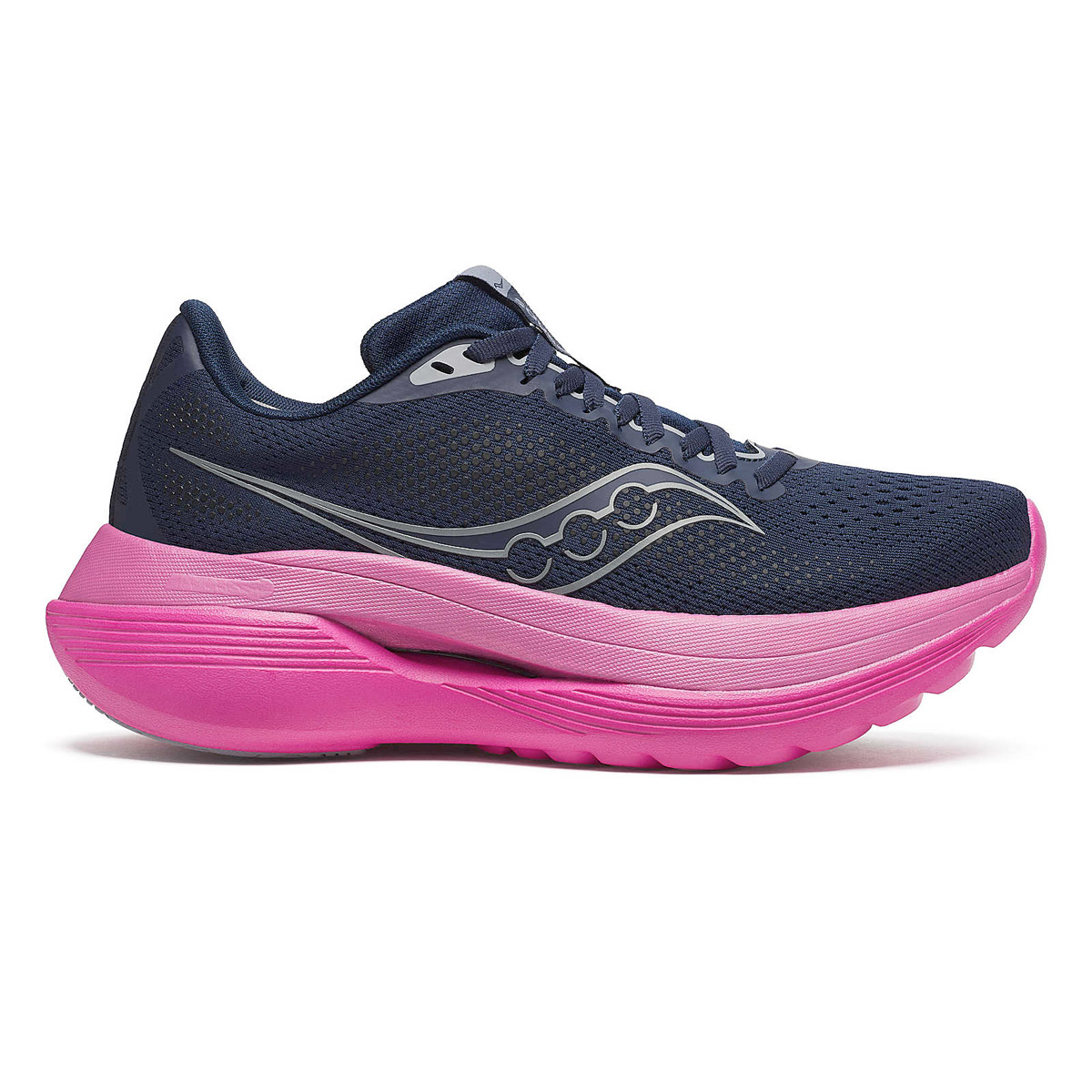 De Saucony Endorphin Trainer (Navy/Fuchsia) voor dames is het nieuwste model Super Trainer met carbonplaat binnen de Endorphin-lijn van Saucony.