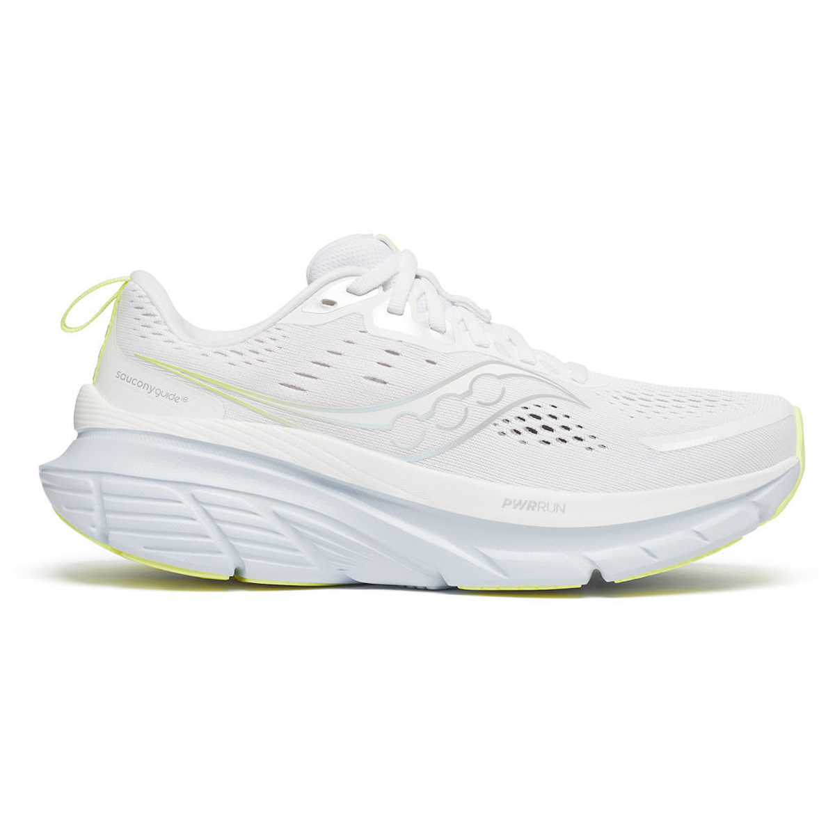 Saucony Guide 18 White/Ice Melt dames is een stabiele loopschoen voor hardlopers die eventueel wat extra ondersteuning kunnen gebruiken.