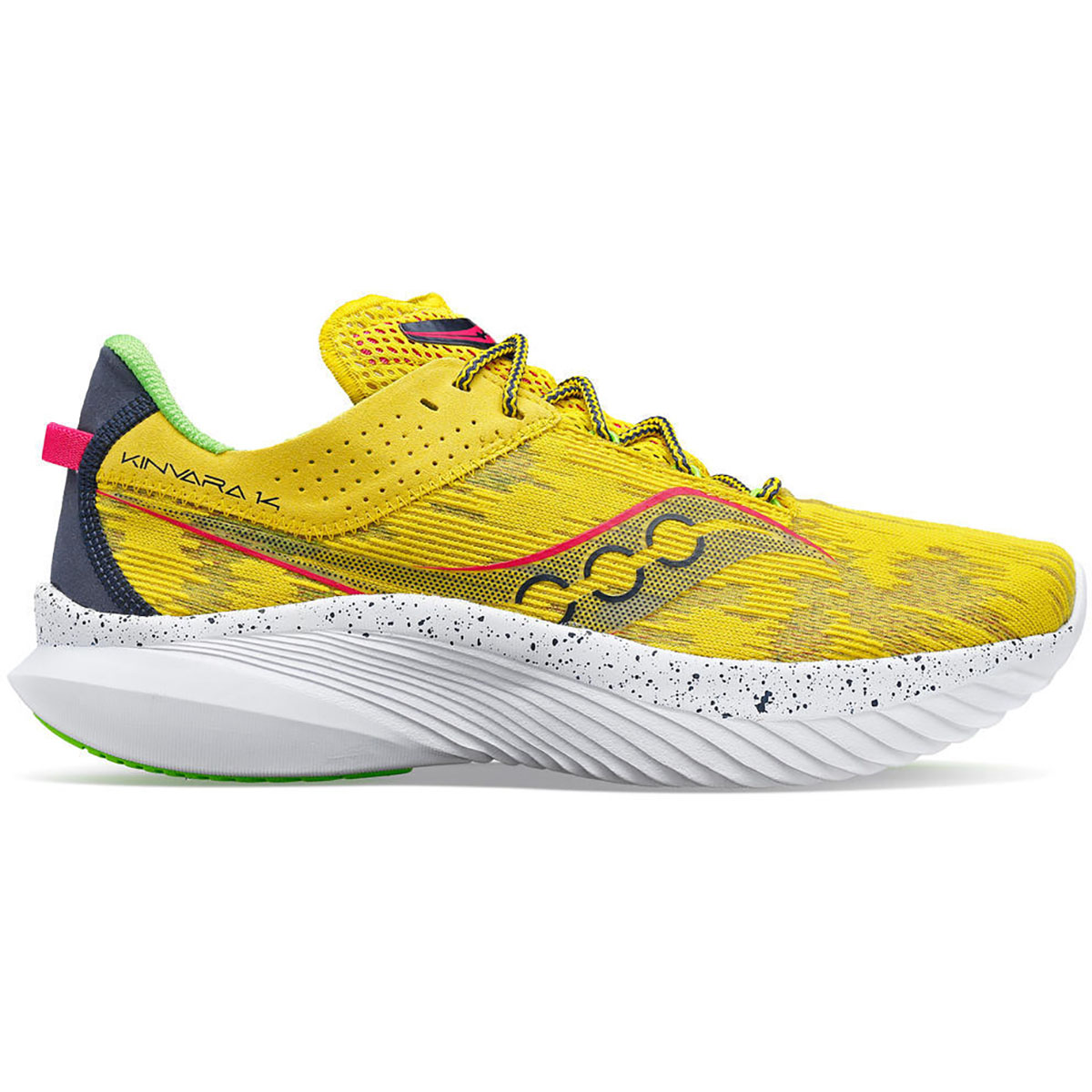 Saucony Kinvara 14 Sulpher Othrwrld Jaune heren toplevel wedstrijdschoen is nu nog lichter dan zijn voorganger. Dat maakt hem de lichtste schoen van saucony tot nu toe. Train slim en hard op deze natural loopschoen!