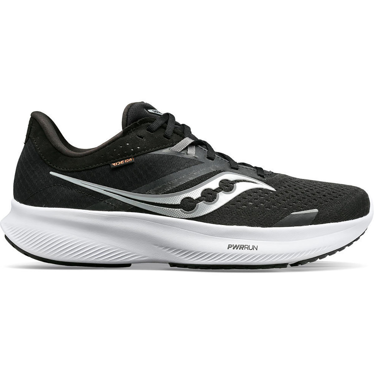 Saucony Ride 16 black white heren is een echte allround neutrale hardloopschoen voor heren. Met comfort boven alles is de Ride 16 perfect gebalanceerd met demping waar je het nodig hebt, deze schoen kan werkelijk alles. Van het moment dat je je veters aantrekt ervaar je een sublieme pasvorm als nooit tevoren.
