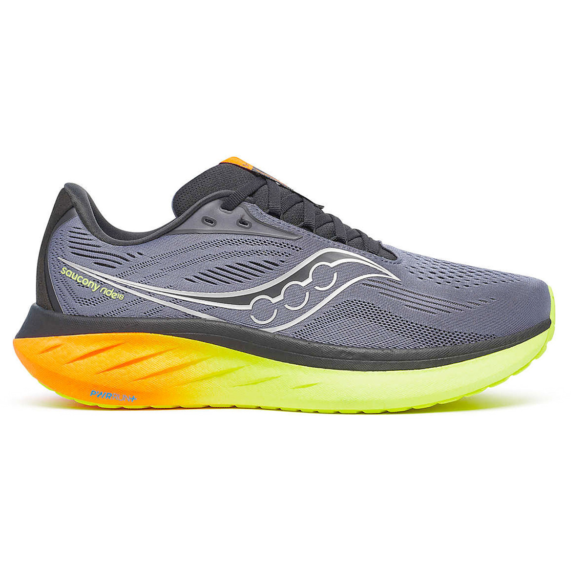PWRRUN+ dempzool, de demping die ook wordt gebruikt in de topmodellen van Saucony zit nu ook in deze Ride 18. Hiermee is de Ride 18 in de categorie 'meest dempende' hardloopschoenen terecht gekomen.