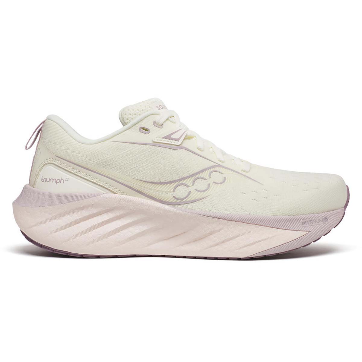 Saucony Triumph 22 Vanilla dames zijn top neutrale hardloopschoenen voorzien van PWRRUNPB foam voor maximale energie teruggave, zelfs tot de laatste kilometers. De Triumph 22 running shoe heeft een volledige transformatie ondergaan met een nieuw bovenwerk, bredere midvoet en extreem veel demping, responsiviteit en comfort.