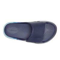 OOfos OOahh Sport Flex Luxe slide (Sky Rally) is een makkelijke instap herstel slipper die stress verminderd op voeten en gewrichten. Deze luxe duurzame recovery slipper met klittenband sluiting verlicht pijn aan de voeten van bijvoorbeeld hielspoor en helpt de sporter of wandelaar sneller herstellen.