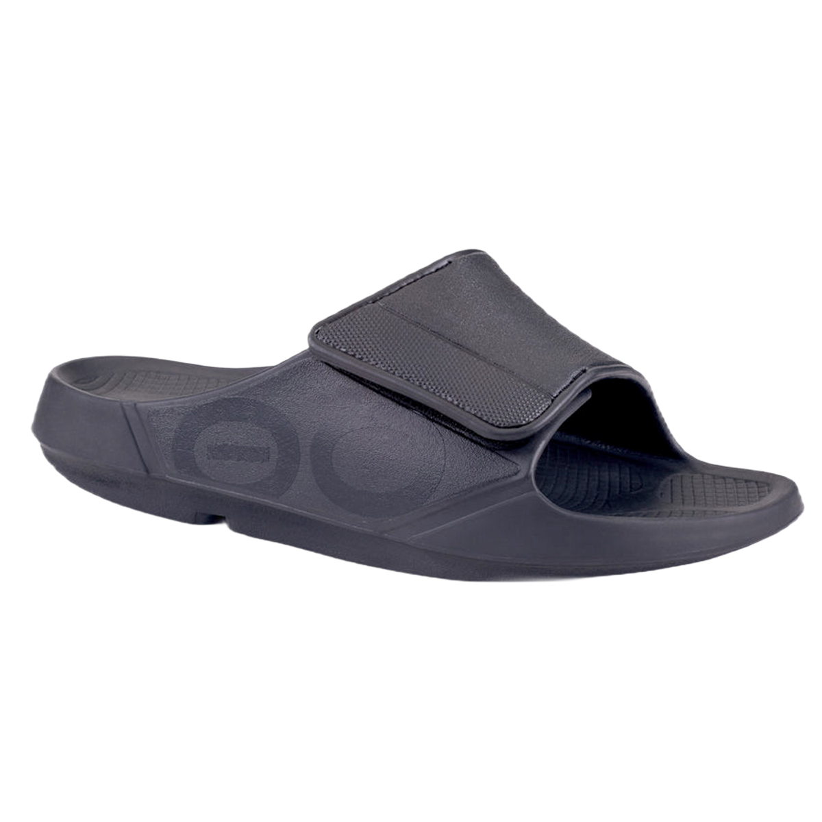 OOfos OOAHH Sport Flex (Matte Black) slides dames helpen bij herstel van de voeten na hardlopen of intensieve sporten. Deze sport flex variant is voorzien van een brede band over de wreef welke door middel van een klitteband sluiting gemakkelijk te verstellen is.