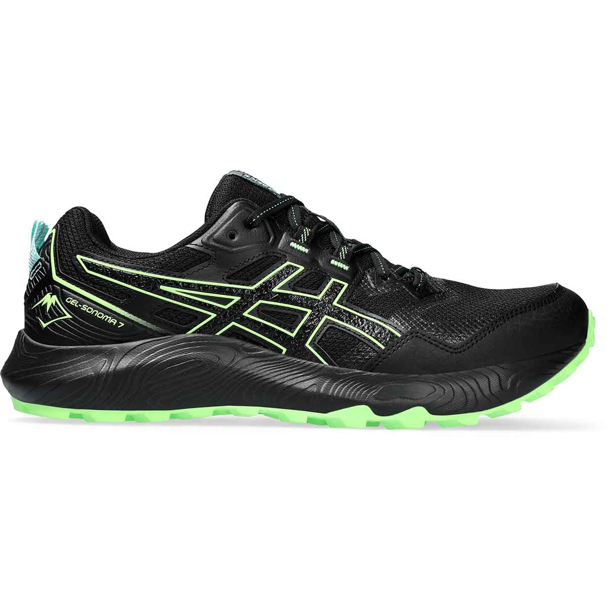 Asics Sonoma 7 Black/Illuminate green heren trailschoenen zijn ontworpen voor het buitenleven en ideaal voor trailen in alle weersomstandigheden. Verhard of onverhard, droog regen of in de sneeuw, deze allround neutrale trail runningshoe laat je zeker niet in de steek.