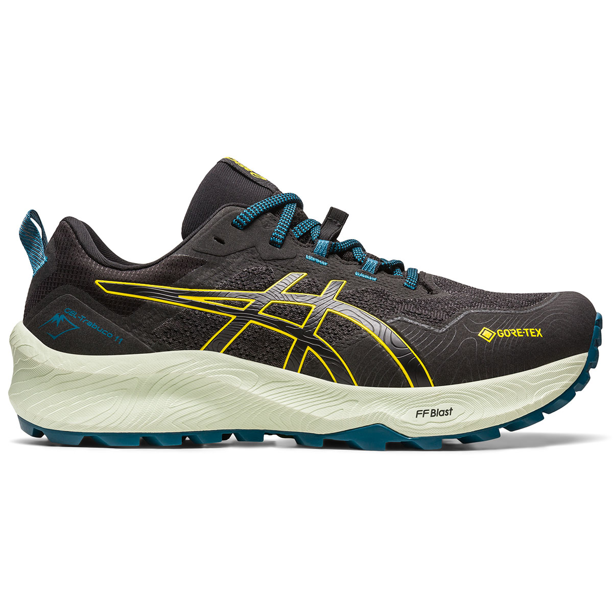 Asics gel- Trabuco 11 GTX Black/Golden Yellow is dé stabiele trail legende waar je zelfverzekerd elke technische trail loopt, ongeacht het weer want 100% waterdicht.
