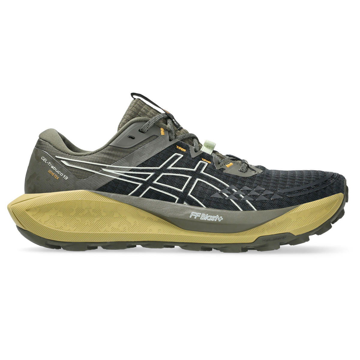 Asics gel- Trabuco 13 GTX (Black/Whisper Green) is dé stabiele trailrun hardloopschoen als jij zelfverzekerd en in weer/wind technische trails wilt lopen!