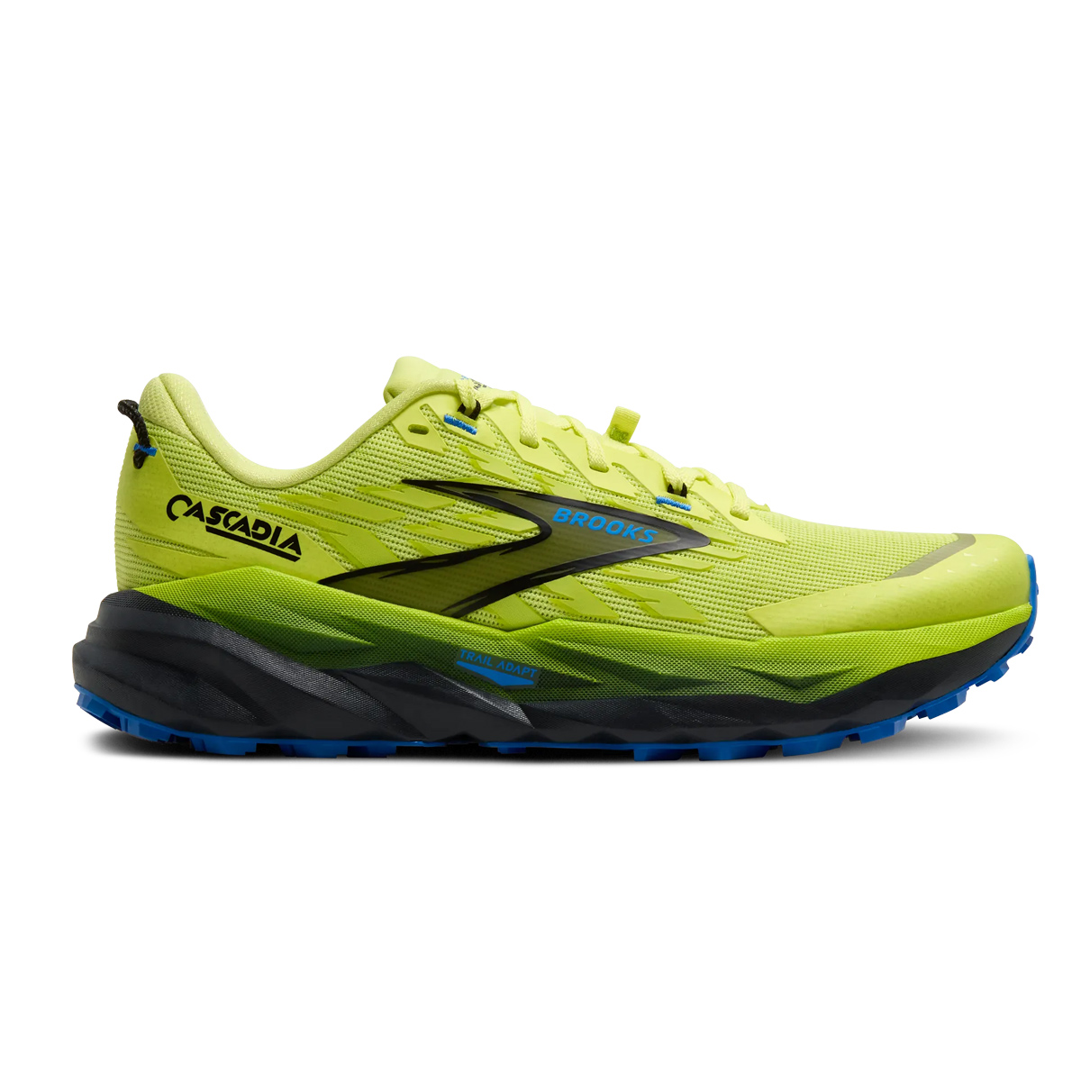Brooks Cascadia 19 (Lime/Black/Blue) trailrunning schoenen heren zijn gemaakt voor de echte avonturiers die voor technische lange trailruns kiezen, maar ook voor die milieubewuste trailrunner die kan genieten van de trails in de natuur.
