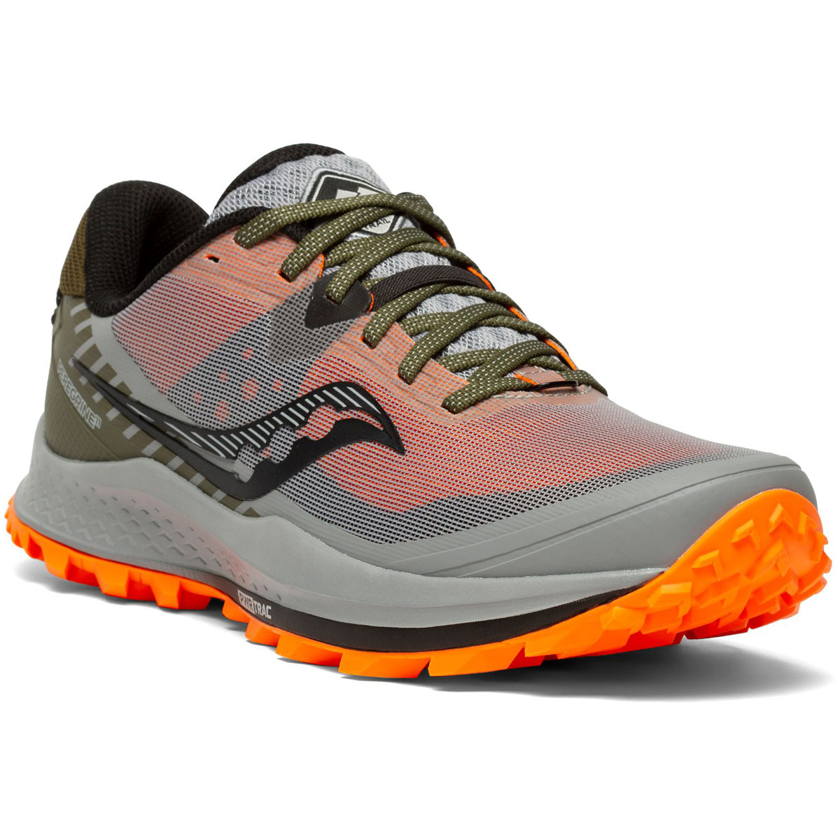 De SAUCONY Peregrine 11 alloy/olive/vizi bleu is een zeer responsieve trail hardloopschoen met een balistic rock shield die je voeten beschermen tegen scherpe stenen en puntige rotsten.