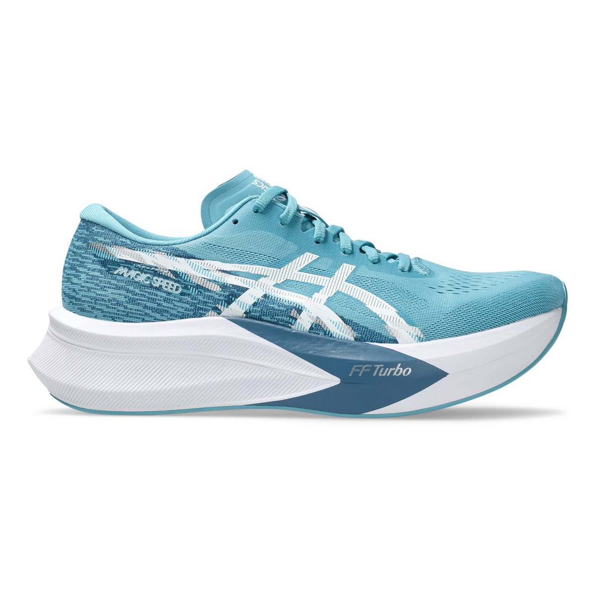 Asics Magic Speed 4 (Stillwater/White) heren carbon hardloopschoenen zijn ontworpen om alles uit je trainingen/wedstrijd te halen. Nu voorzien met het lichtere FFBLAST TURBO demping uit de Asics Metaspeed collectie voor 13% meer aan responsiviteit. Met een carbonplaat over de gehele lengte loop je nog sneller, stabieler, energieker en vol vertrouwen richting de wedstrijddoeleinen die jij voor ogen hebt!
