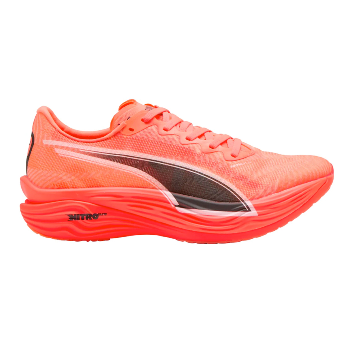 Puma Deviate Nitro Elite 3 Glowing Red heren zijn lichte snelle carbonplated wedstrijd schoenen voor snelle atleten en vrijetijdslopers die voor turbosnelheid willen gaan. Meer mm aan lichter en verbeterd NITROFOAM™ ELITE in de tussenzool en een stijvere carbon-PWRPLATE voor een nog krachtigere responsieve afzet en maximale energieteruggave dan je gewend was!