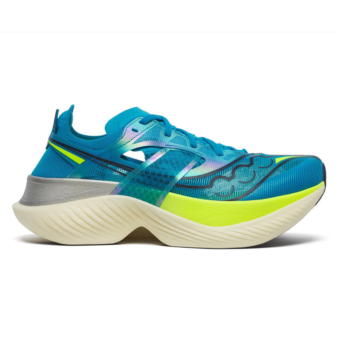 De Endorphin Elite Viziblue/citron Bleu VF heren is het nieuwe en snelste wedstrijd model schoen ooit gemaakt door Saucony. Door een combinatie van hoogwaardige technische snufjes zorgt deze Carbon schoen op 3 manieren voor nog meer vering en energieteruggave dan ooit tevoren!