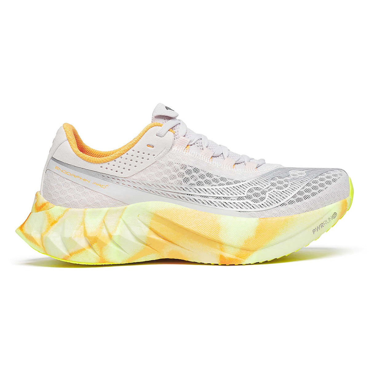 Saucony Endorphin Pro 4 Fog/Peel dames lichtgewicht toplevel snelle wedstrijdschoen, een pittig en responsief maar toch soepel en efficiente hardloopschoen voor nog snellere prestaties. Je nieuwe partner in crime als het gaat om race schoenen!