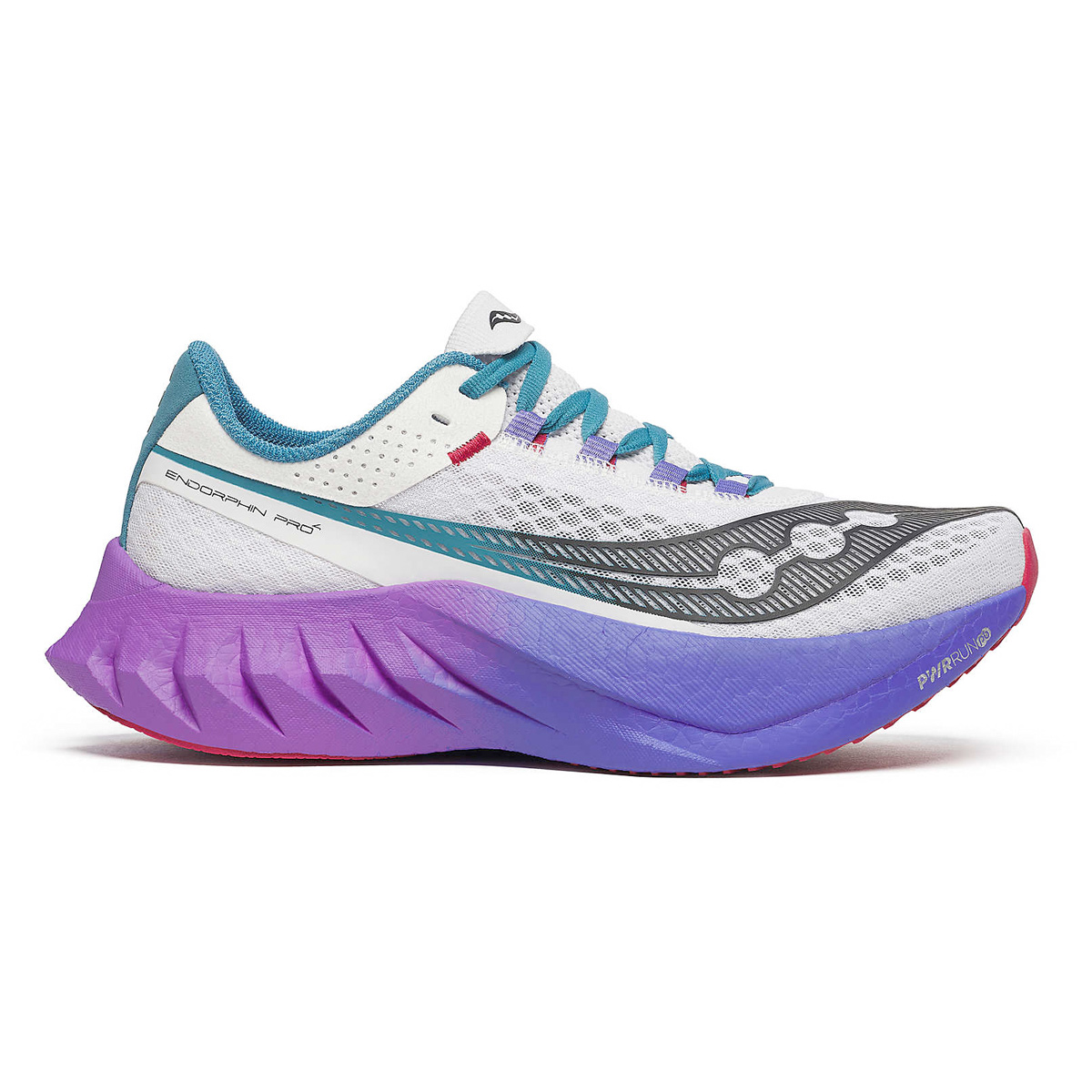 De Endorphin Pro 4 heeft serieuze update gekregen. De vernieuwde tussenzool van de Pro 4 bestaat uit een fusie van PWRRN PB en PWRRN HG foam, de 2 meest responsieve en dempende foam soorten van Saucony. Moeiteloos genieten van volle snelheden door voortwaarste stuwing. Opgebouwd op een carbonplaat over de volledige lengte om het maximale uit je wedstrijdschoen te halen.